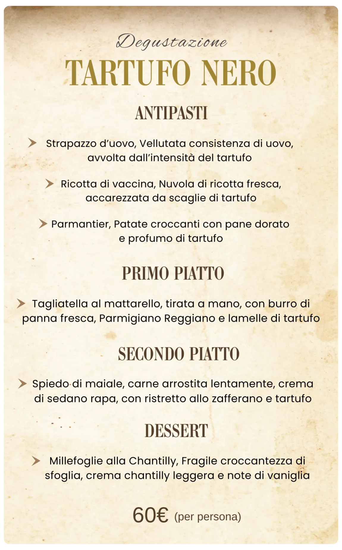 Ogni portata é stata studiata con cura dal nostro Chef Cristian D'Elia, con abbinamenti che esaltano la nobiltà di questo ingrediente pregiato...